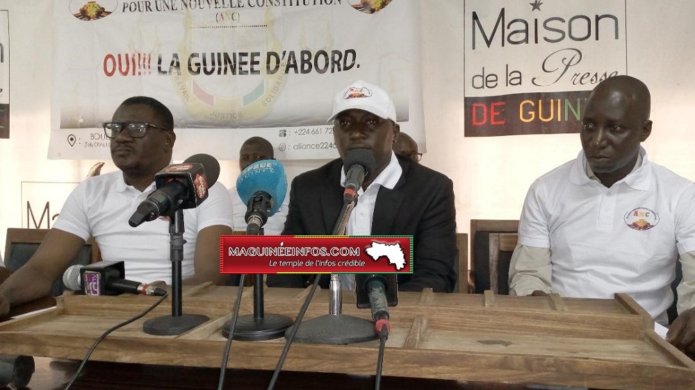 « La Guinée, notre pays vit depuis plusieurs semaines dans un environnement sociopolitique pollué par un débat inopportun, impertinent et dangereux parrainé par un prétendu front dénommée le FNDC. L’Alliance pour une Nouvelle Constitution condamne fermement l’attitude prétentieuse et antirépublicaine de ce front. Nul ne peut se prévaloir la souveraineté du peuple, ce qu’on a envie de répondre aux propos de ce groupe d’imposteur qui s’érige en donneur de leçon. Nous voulons répondre à ces prétendus défenseurs de la constitution par ceci : on ne défend pas une constitution en la violant. Ce qu’ils sont en train de défendre consacre pourtant la pluralité des opinions et leur libre expression », a lancé le coordinateur de l’ANC, Mohamed Chérif.