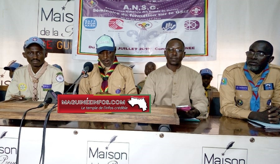 En prélude du séminaire de formation sur le GSAT (Global Support Assisment Tours) en français ‘’Soutien global’’, l’Association Nationale des Scouts de Guinée (ANSG) a animé une conférence de presse ce mardi 02 juillet 2019 à la maison commune des journalistes sous le thème : ‘’La jeunesse face à l’enjeu de la paix en Guinée’’. Un séminaire au cours duquel, plusieurs sujets seront développés dans le cadre du maintien de la paix et la quiétude sociale.