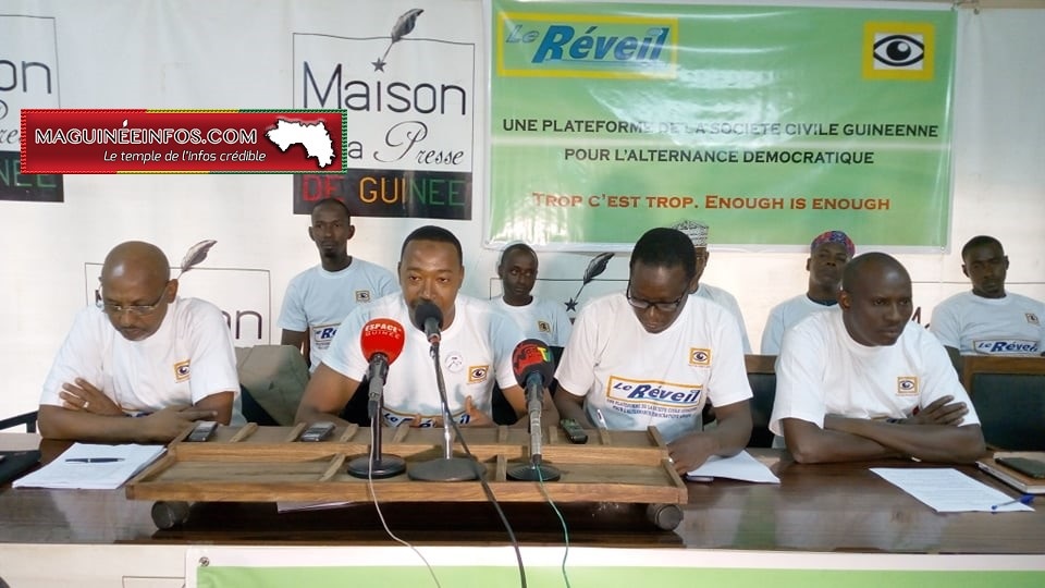 Composée de la Plateforme des Jeunes Leaders de l’axe pour la Démocratie et le Développement (PJDD), la Coalition Nationale pour la Paix en Guinée (CNPG) et Guinée 4 pour l’Emergence, Le Réveil a été lancé ce vendredi, 12 juillet 2019 à la maison commune des journalistes à Kipé. Elle est une plateforme de la société civile guinéenne pour l’alternance démocratique qui a pour objectif de défendre des valeurs républicaines au-delà de 2020 pour l’instauration d’un véritable État de droit à l’instar des autres pays.