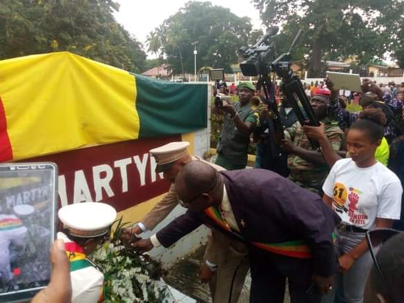 A rappeler que cette célébration a commencée par le dépôt de la gerbe de fleurs par Madame le Gouverneur de la région Sarangbè CAMARA accompagnée par le préfet N’Fansoumane TOURE.