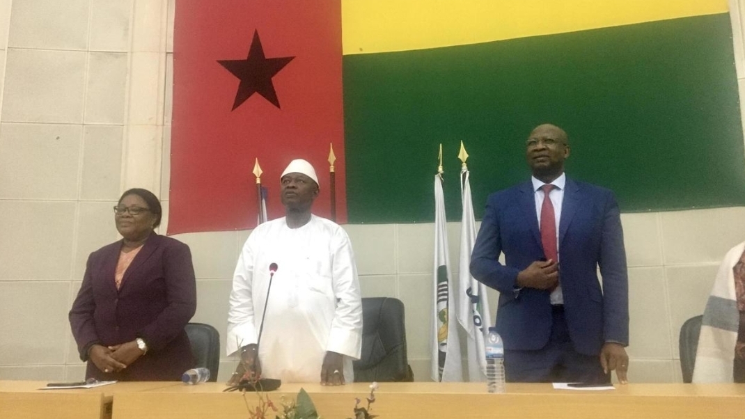 L’hymne national résonne dans l’hémicycle sous le drapeau bissau-guinéen. En boubou blanc, le président de l’Assemblée Cipriano Cassama est investi en présence du Premier ministre Aristide Gomes.