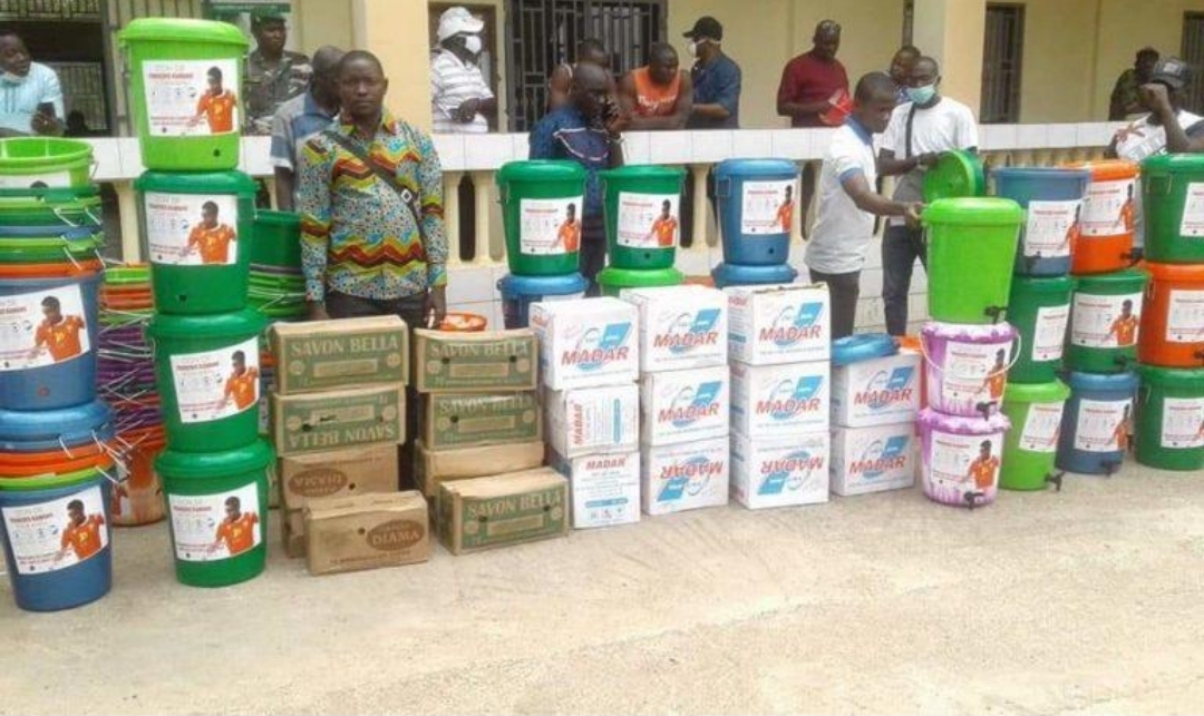 Loin de la ville des agrumes , le sociétaire des Girondins de Bordeaux a pensé à sa ville natale pour débloquer des kits sanitaires, des savons, du chlore, des sceaux pour le lavage des mains dans le but d’éradiquer cette pandémie qui inquiète toutes les couches mondiales.