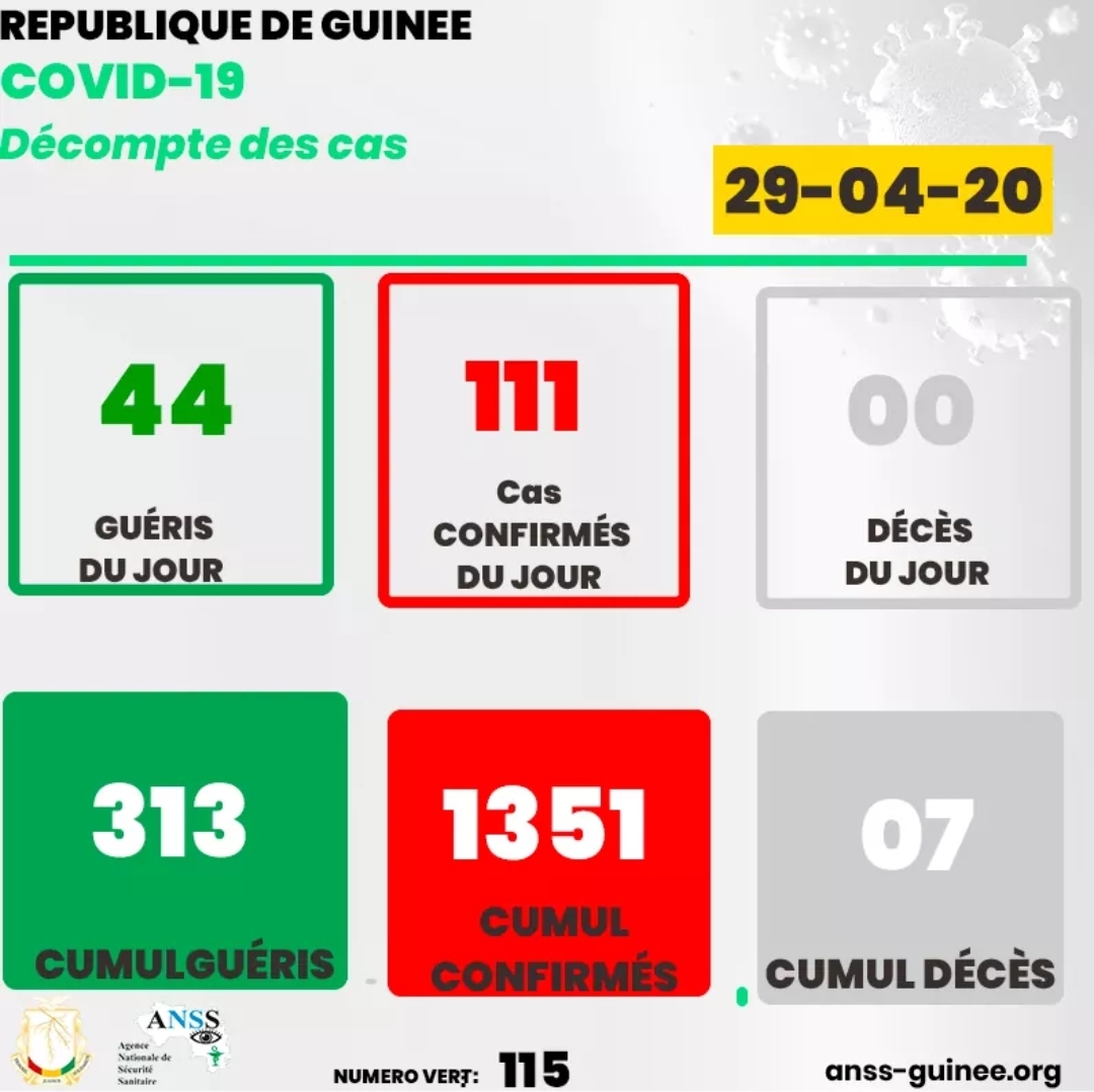 L’inquiétude dévient grandissante avec la multiplication des chiffres liés à la pandémie de Coronavirus ces dernières heures en République de Guinée. Avec 111 nouveaux cas confirmés ce mercredi selon un communiqué de l’ANSS, le pays grimpe à 1351 cas positifs au Coronavirus.