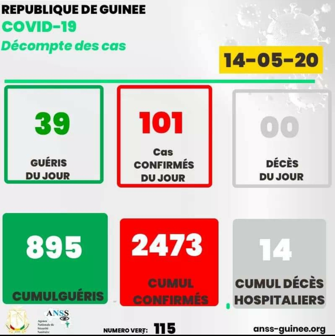 Des chiffres de nouvelles personnes porteuses de la pandémie de COVID-19 en République de Guinée ont été de nouveau revus à la hausse ce jeudi. Dans un communiqué de l’ANSS dont une copie nous est parvenue dans l’après-midi, la Guinée enregistre 101 nouveaux cas confirmés, 39 nouveaux guéris et 00 décès. Ce qui signifie qu’on s’éloigne de la solution contre le COVID-19 avec le ratio d’infection et des cas de morts ces jours-ci qui monte en flèche.