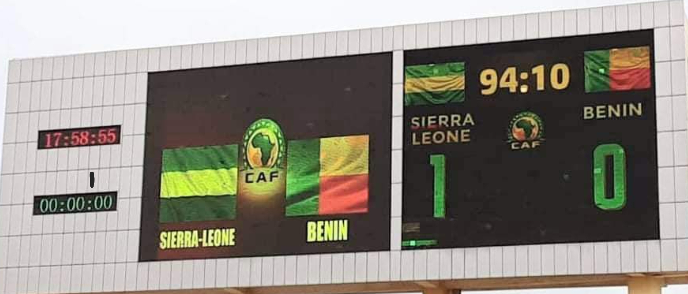 Initialement prévu le 30 mars 2021 en Sierra-léone, le match tant attendu a donné son verdict au stade Général Lansana Conté de Nongo ce Mardi, 15 Juin 2021. La rencontre opposait la Sierra-léone au Bénin au Stade Général Lansana Conté de Nongo de Conakry. Les léonais se sont imposé sur le score de (1-0) sur penalty grâce à Kei Kamara à la 19ème minute.