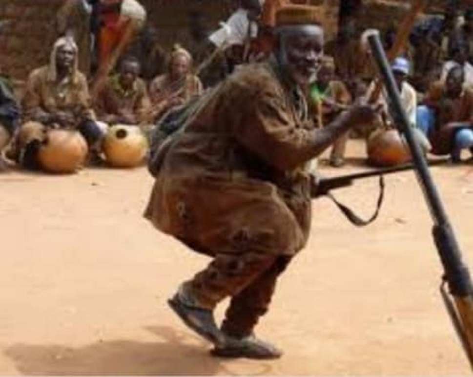 En dansant le Douga par exemple, on se courbe légèrement puis, on balance le corps, le fusil de chasse en main, le canon levé vers le ciel. Un pas à gauche, un pas à droite, un coup de fusil.