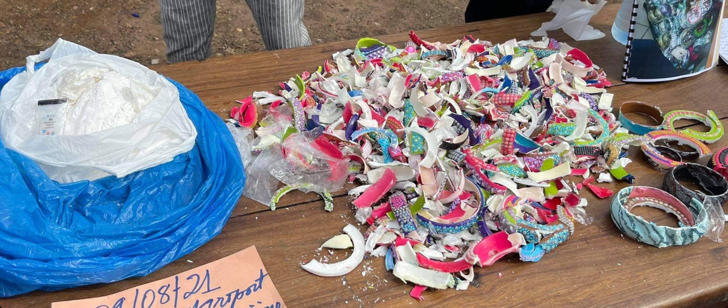 Selon les services de Sécurité du Colonel Thiegboro, la dame dissimulait ces kilogrammes de drogue dans des bracelets, comme le montre les images.