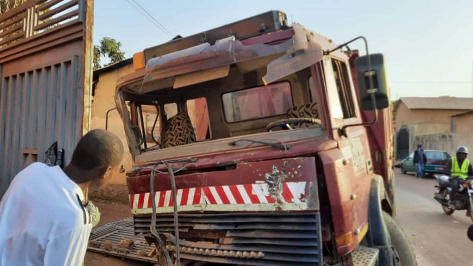 «J’étais à un enterrement, à mon retour j’ai trouvé que l’accident s’est produit. J’ai pris langue avec le chef du secteur et le conseil du quartier, ils m’ont relaté ce qui s’est passé. Le camion quittait vers chez Siradio Diallo, le chauffeur a tenté de l’allumer mais impossible. Le camion est monté sur sa cale, il est venu trouver toute une famille massée dans un véhicule et les a légèrement frotté, il y a eu un blessé qui est actuellement alité à l’urgence, un autre aussi qui a perdu conscience. Sur son chemin, le camion a ravagé plusieurs autres véhicules et a fini sa course dans notre cour. Les portails de la cour et la boulangerie de mon père ont été démolis, les dégâts sont énormes», a témoigné le chef du quartier.