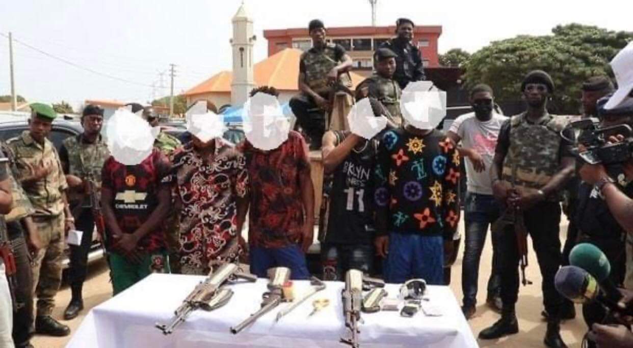Cinq présumés bandits ont été interpellés par la BAC 15 de Coyah le mercredi passé avec des armes de guerre de type PMAK, un fusil calibre 12 et des munitions. Ils ont été présenté ce mardi 12 avril 2022 à la presse au Ministère de la Sécurité. Ses personnes sont accusées de semer la terreur dans plusieurs quartiers de la Préfecture de Coyah.