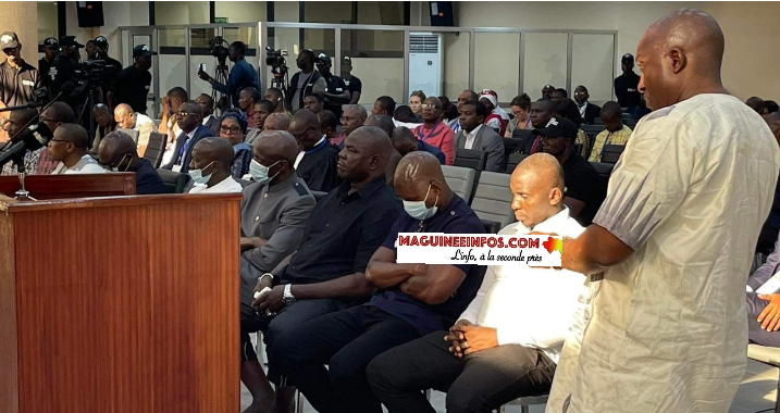 Le Procès des massacres du 28 septembre 2009 est ouvert ce mercredi à 16h. Après l’appel nominal des accusés et celui des témoins, l’heure est à la lecture de l’ordonnance du dossier. Une étape qui prendra assez de temps selon le Juge en charge du dossier. C’est d’ailleurs pourquoi il demande aux accusés de prendre place sur les chaises transportées à cet effet. Alors que les accusés y compris Moussa Dadis CAMARA, Claude PIVI et Tiégboro CAMARA, Aboubacar Sidiki Diakité alias Toumba, principal accusé, « refuse » lui d’occuper la chaise qu’on lui a envoyée, a constaté sur place, un des reporters de Maguineeinfo.com.