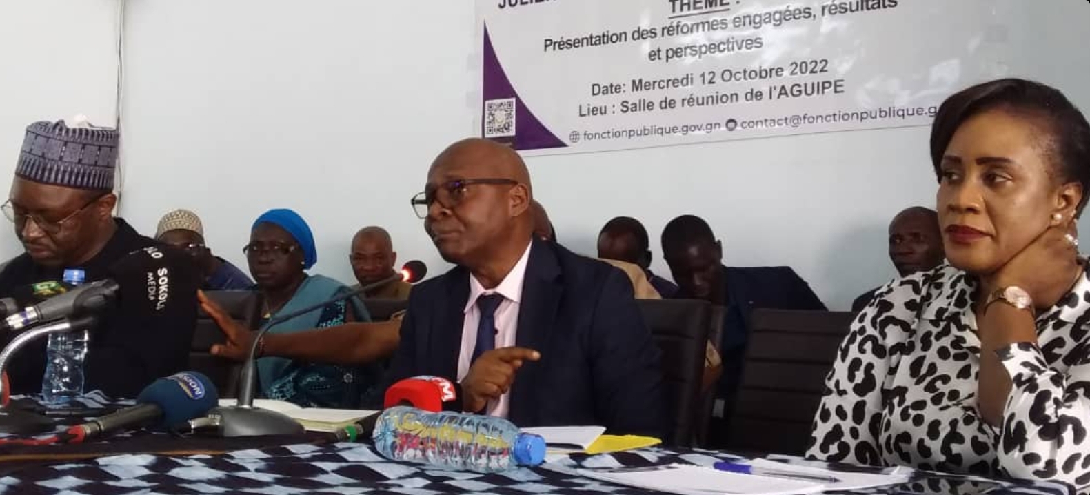 « Il y’a des gens de 87 ans qui travaillent à la Fonction publique qui sont au nombre de 2215, c’est-à-dire 2215 agents sont à la Fonction publique. Ce sont les jumeaux nationaux, tous nés le 1er janvier 1985, ils sont à la Fonction publique guinéenne. C’est un problème que nous sommes en train de résoudre. Au 15 de ce mois, tous ceux-là qui sont en position de double mandatement qui n’auront pas démissionné de la Fonction publique, ils me trouveront sur leur chemin. Le 15 de ce mois, tout agent qui démarche à la Fonction publique mais qui n’y travaille pas, qui est couché tranquillement à la maison ou qui est dans le secteur privé, nous allons les traquer jusqu’au dernier et là ils payeront tout le montant qu’ils ont pris proportionnellement au nombre d’années qu’ils ont touché avec l’Etat guinéen », a menacé Julien Yombouno.