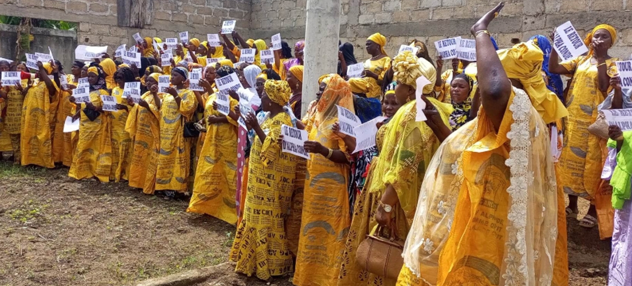 Habitées en jaune, couleur du parti, munies des pancartes, elles ont égrèné une liste de manquements dans la gestion du CNRD, notamment la pris en compte des femmes dans les projets de développement. Dans la capitale forestière, elles se disent prêtes à protester face aux militaires, jusqu’au retour d’Alpha Condé au pays pour disent-elles, terminer son mandat.